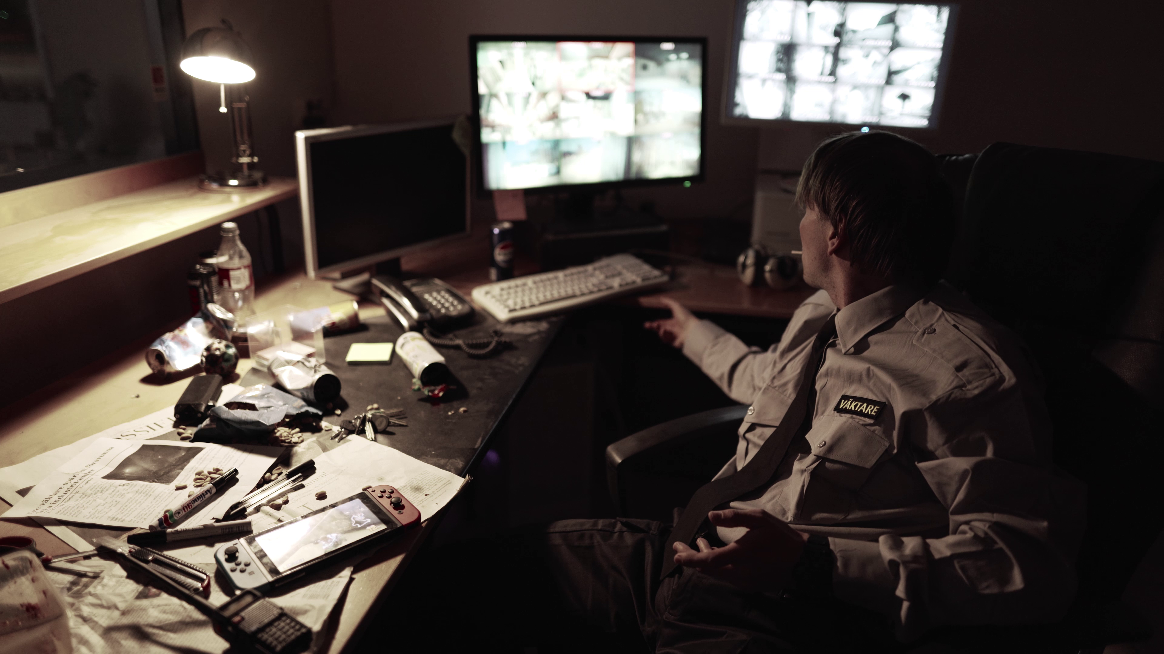 A night watchman is startled by a detected motion on his security screen. His investigation leads to an eerie encounter.